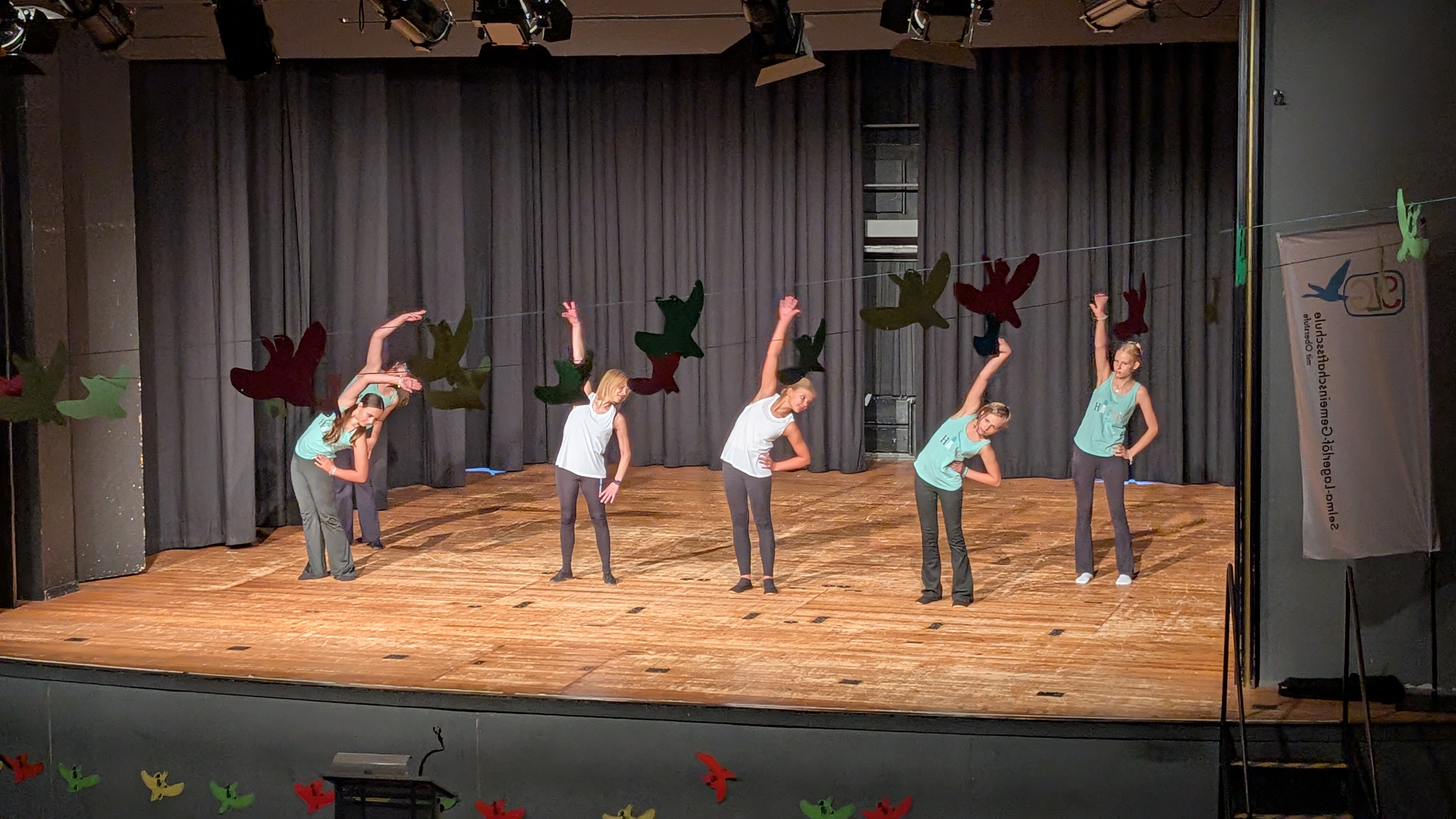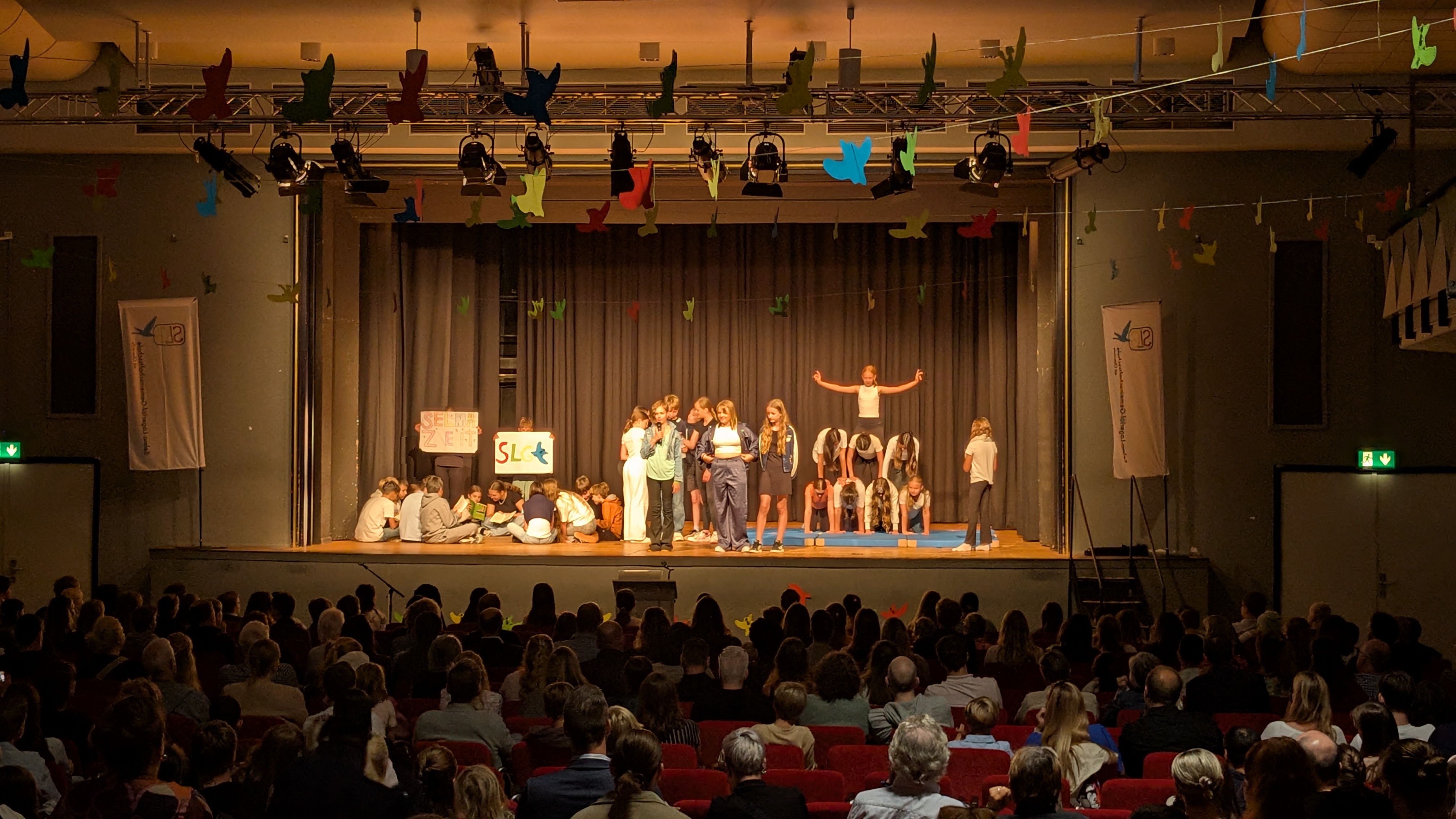 Zunächst begrüßte der Schulleiter, Herr Christian Hack, den neuen 5. Jahrgang mit einer kurzen Rede, gefolgt von einer Tanzvorführung der Jazz-Dance AG. Nach dem anschließenden Grußwort des Schulelternbeirats führte der 6. Jahrgang sein selbst geschriebenes Theaterstück "Auf der Suche" auf. Zum Glück fanden die suchenden Schauspielerinnen und Schauspiel am Schluss des Stücks ihre Traumschule: die SLG! Gemeinsam wurde der SLG-Song angestimmt und gesungen.