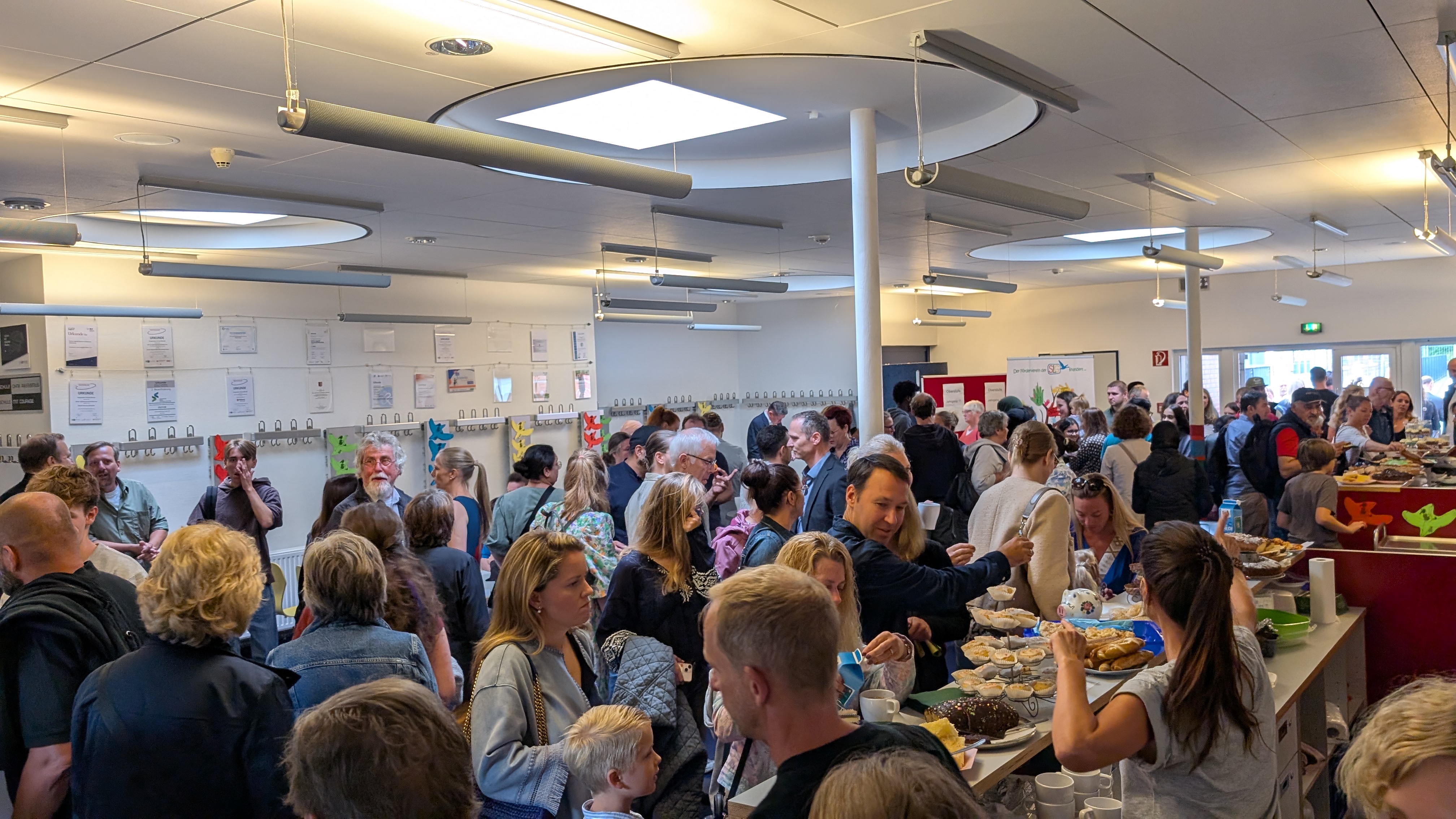 Es folgte die Vorstellung der Klassenlehrerinnen und Klassenlehrer. Während die Schülerinnen und Schüler gemeinsam mit ihren neuen Klassenlehrern und Klassenlehrerinnen die neuen Klassenräume eroberten, konnten sich die Eltern und anderen Gäste am Kuchenbuffet stärken und dank der vom Förderverein der Schule finanzierten Getränke auch den Durst löschen. Vielen Dank an den Förderverein und an all die fleißigen Kuchenbäckerinnen und Kuchenbäcker.