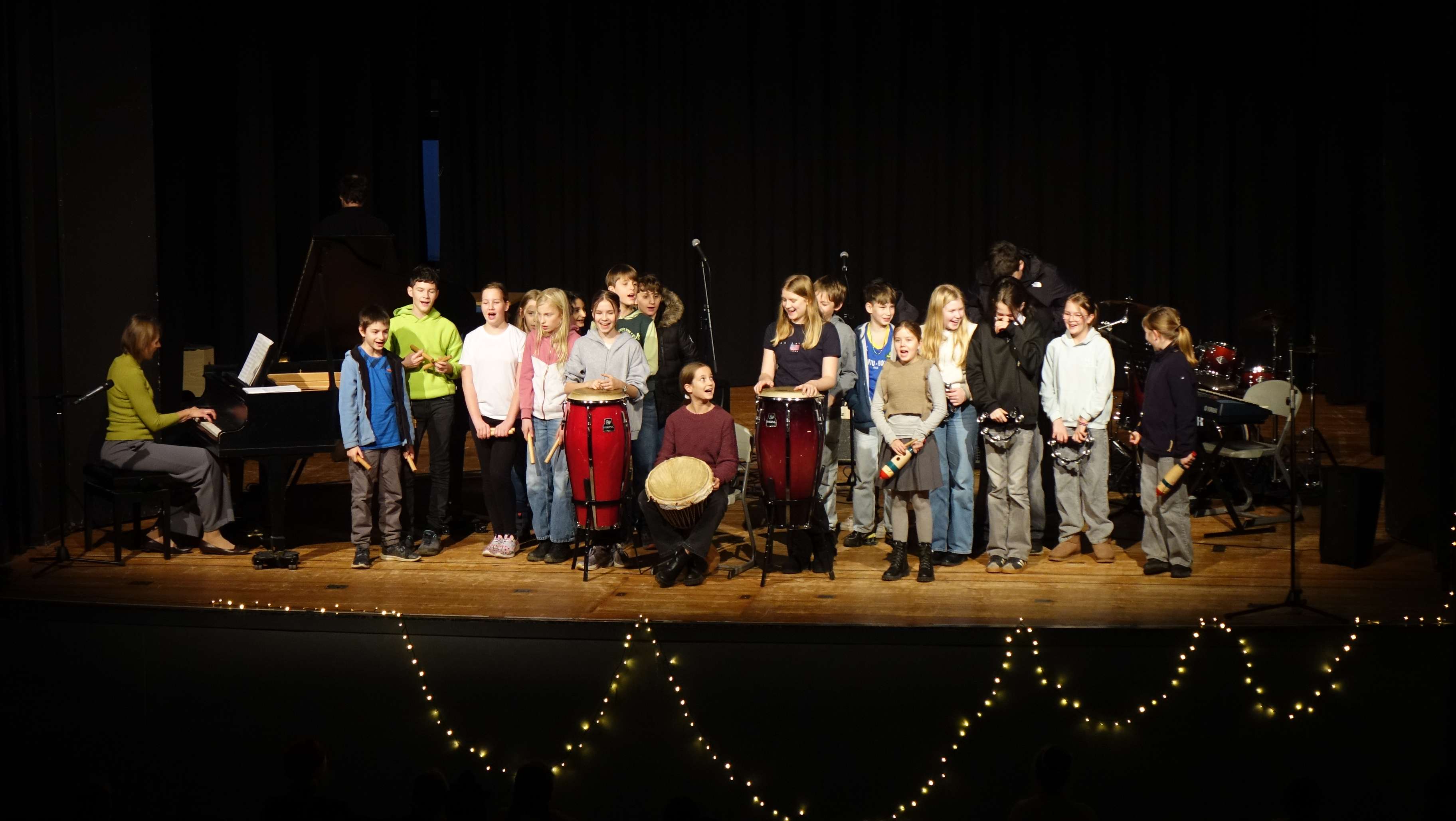 Das Bühnenprogramm war ebenfalls sehr breitgefächert: Solistinnen und Solisten an Klavier und Gitarre hatten ebenso Platz wie die neu formierte Schulband, Klassen aus dem 5. und 6. Jahrgang, die Jazztanz- und die Zirkus-AG.