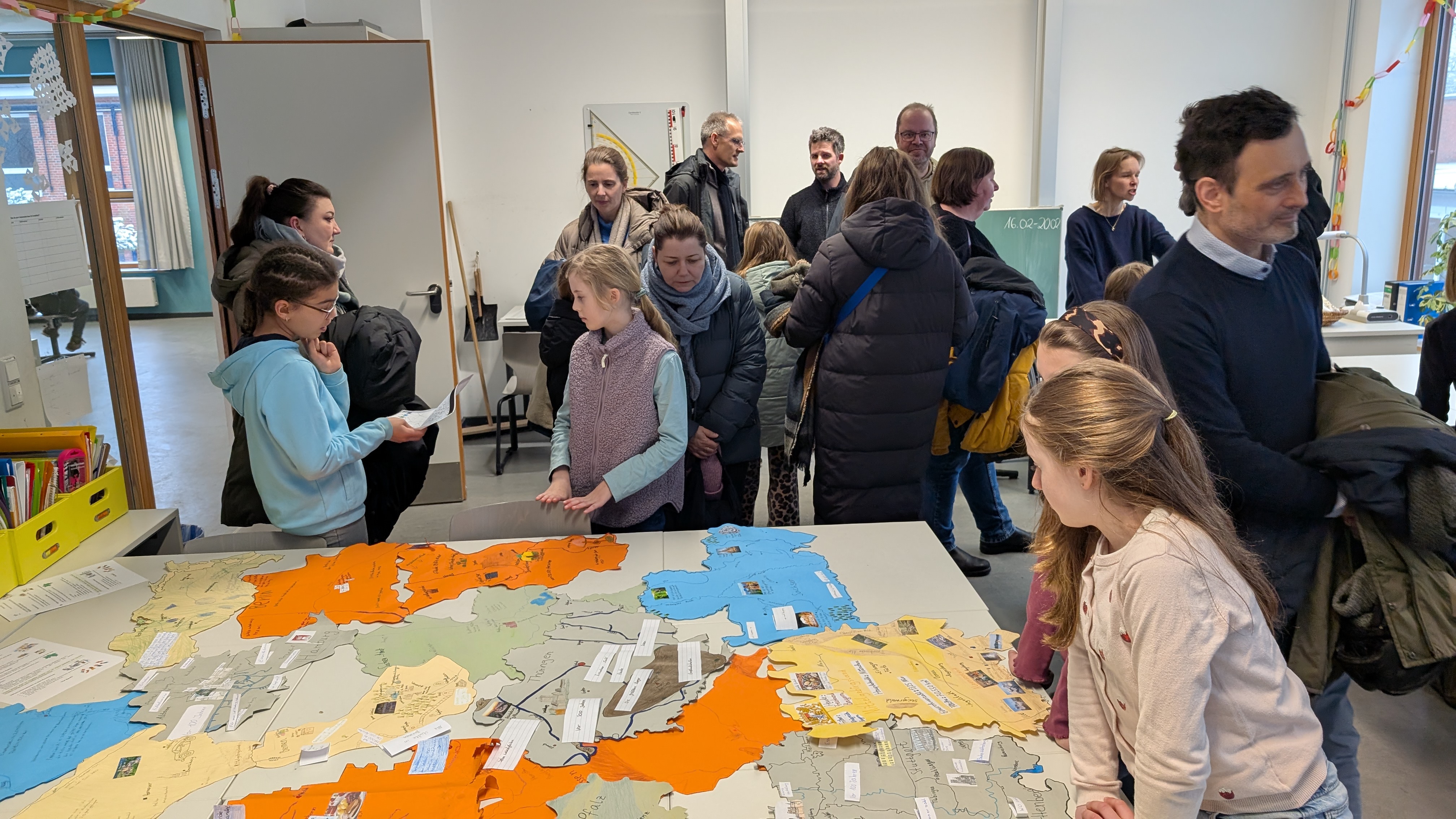 Am Freitag, 13.02.2026, fand von 15 Uhr bis 17.30 Uhr der Tag der offenen Tür an unserer Selma-Lagerlöf-Gemeinschaftsschule statt. Schon früh füllten sich die Räumlichkeiten mit interessierten 4. KlässlerInnen und ihren Eltern sowie zukünftigen OberstufenschülerInnen. Diese konnten sich bei geführten Rundgängen und verschiedenen informativen Ausstellungen, mitreißenden Vorstellungen und spannenden Mitmachaktionen ein umfassendes Bild von der SLG machen.