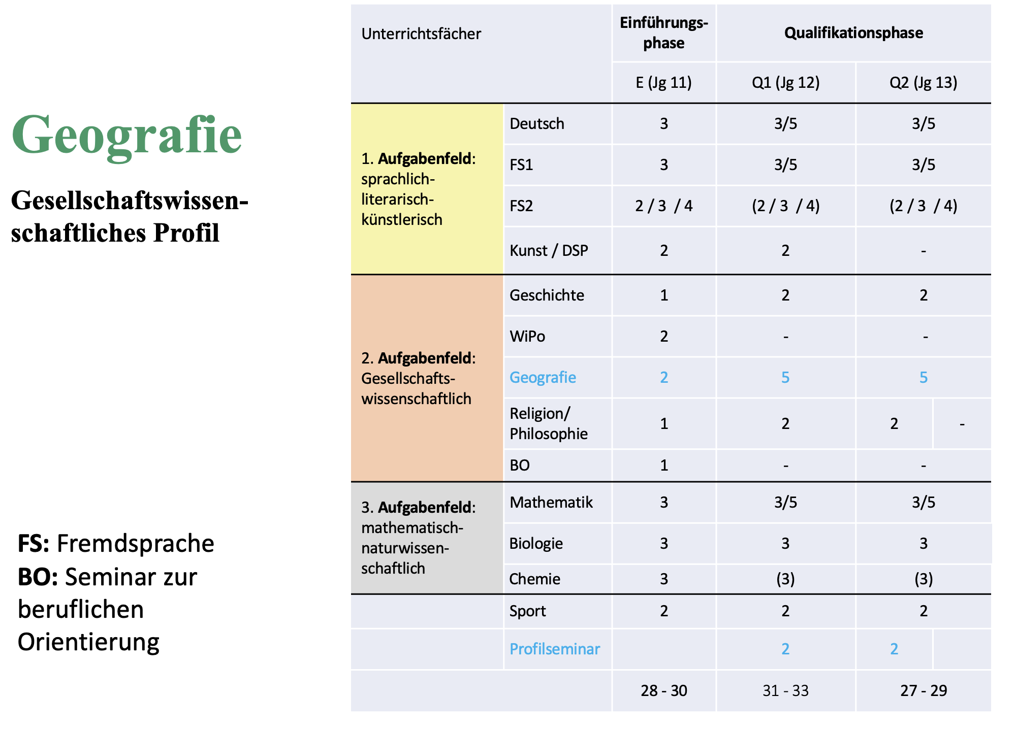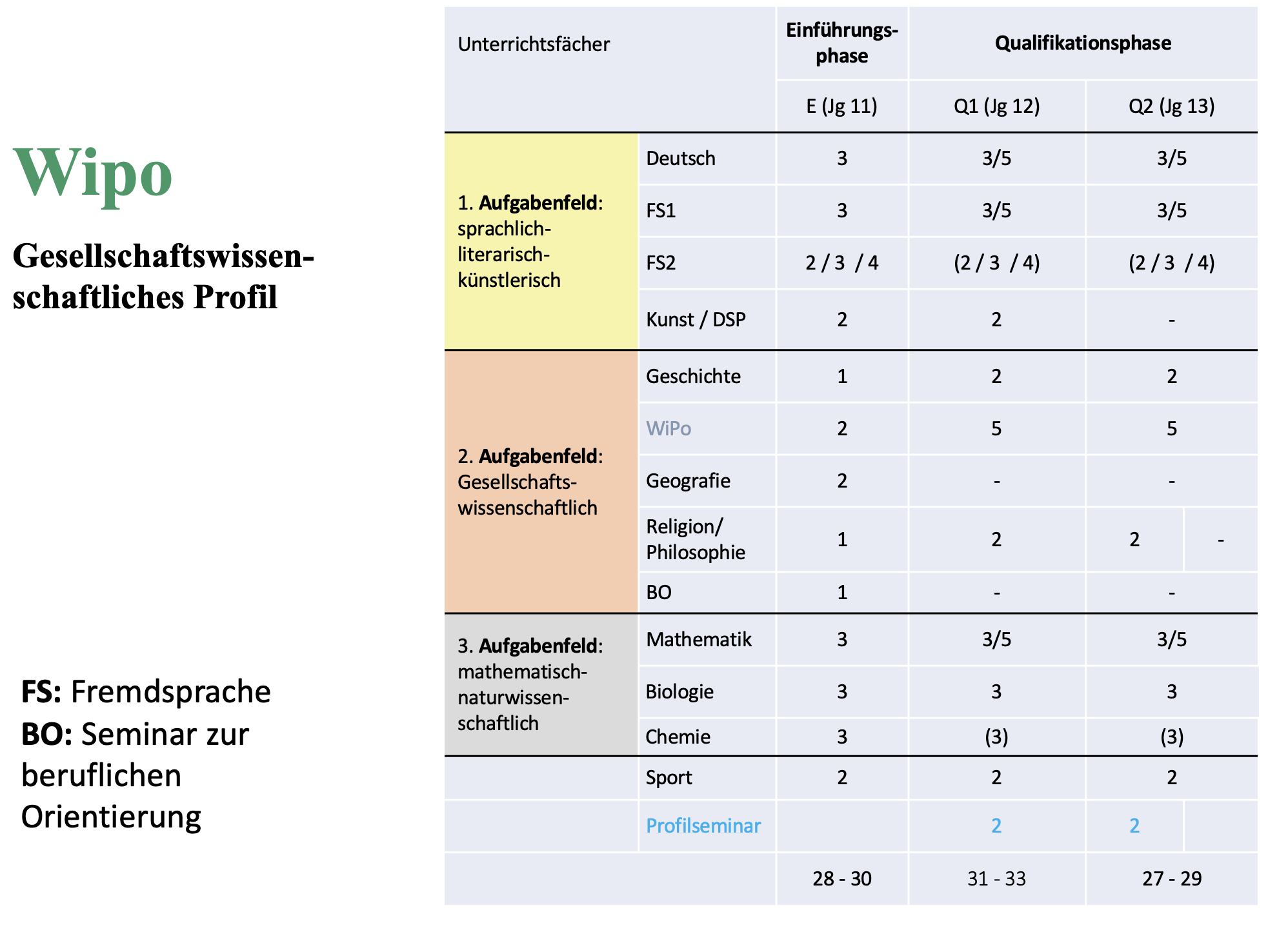 Aus der Zusammenarbeit von Profilfach und Seminar ergeben sich die folgenden inhaltlichen Schwerpunktsetzungen: