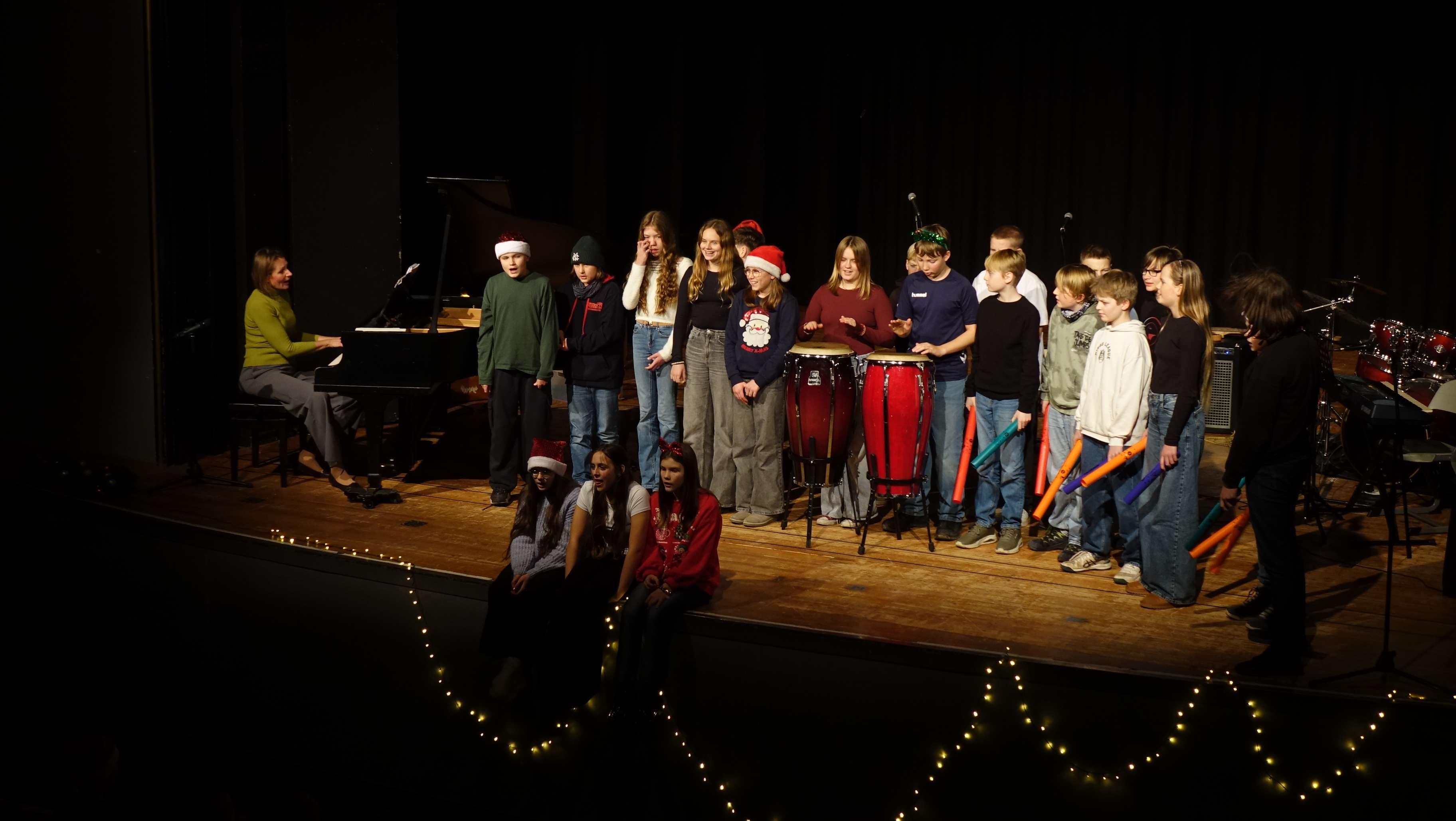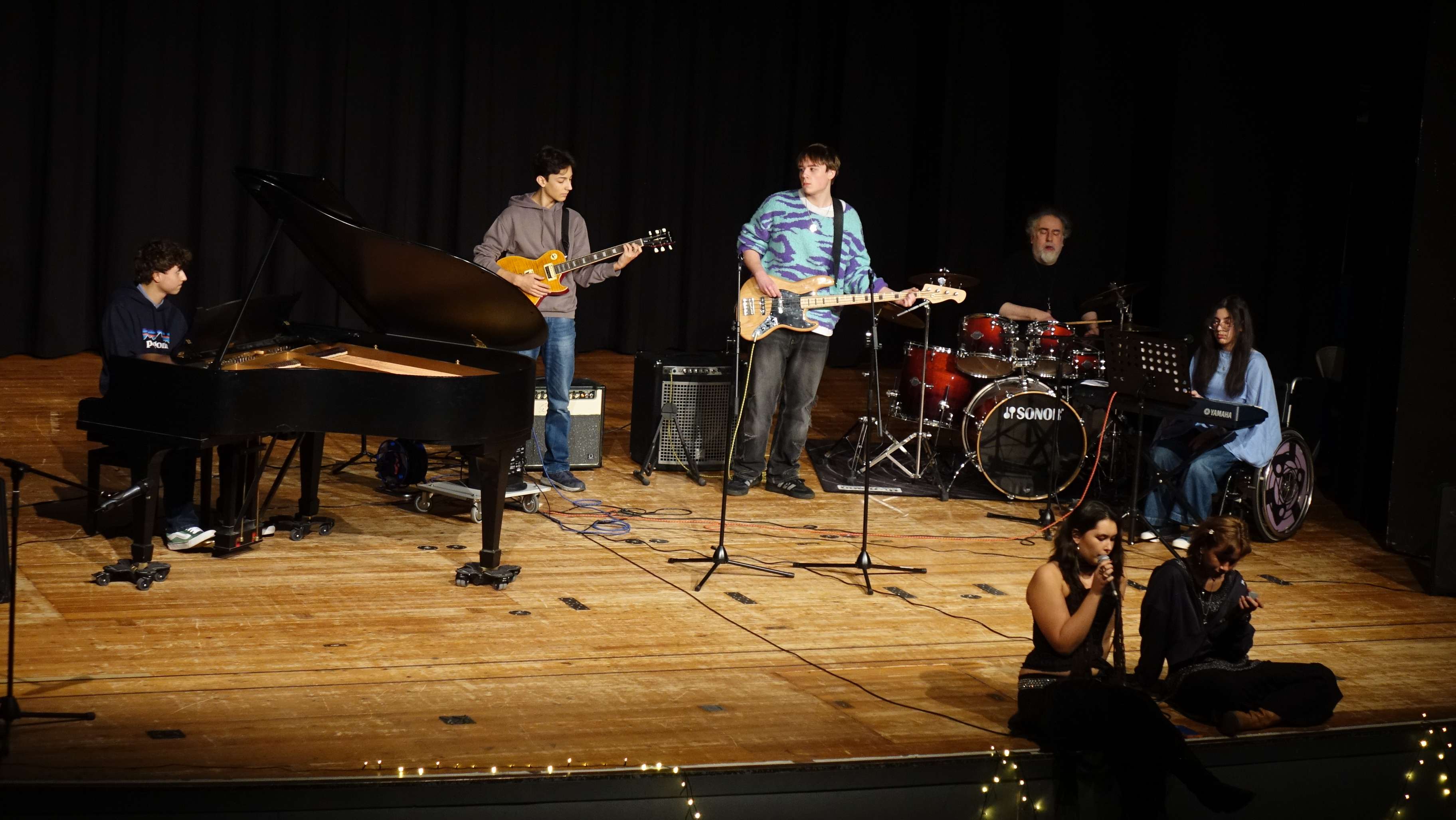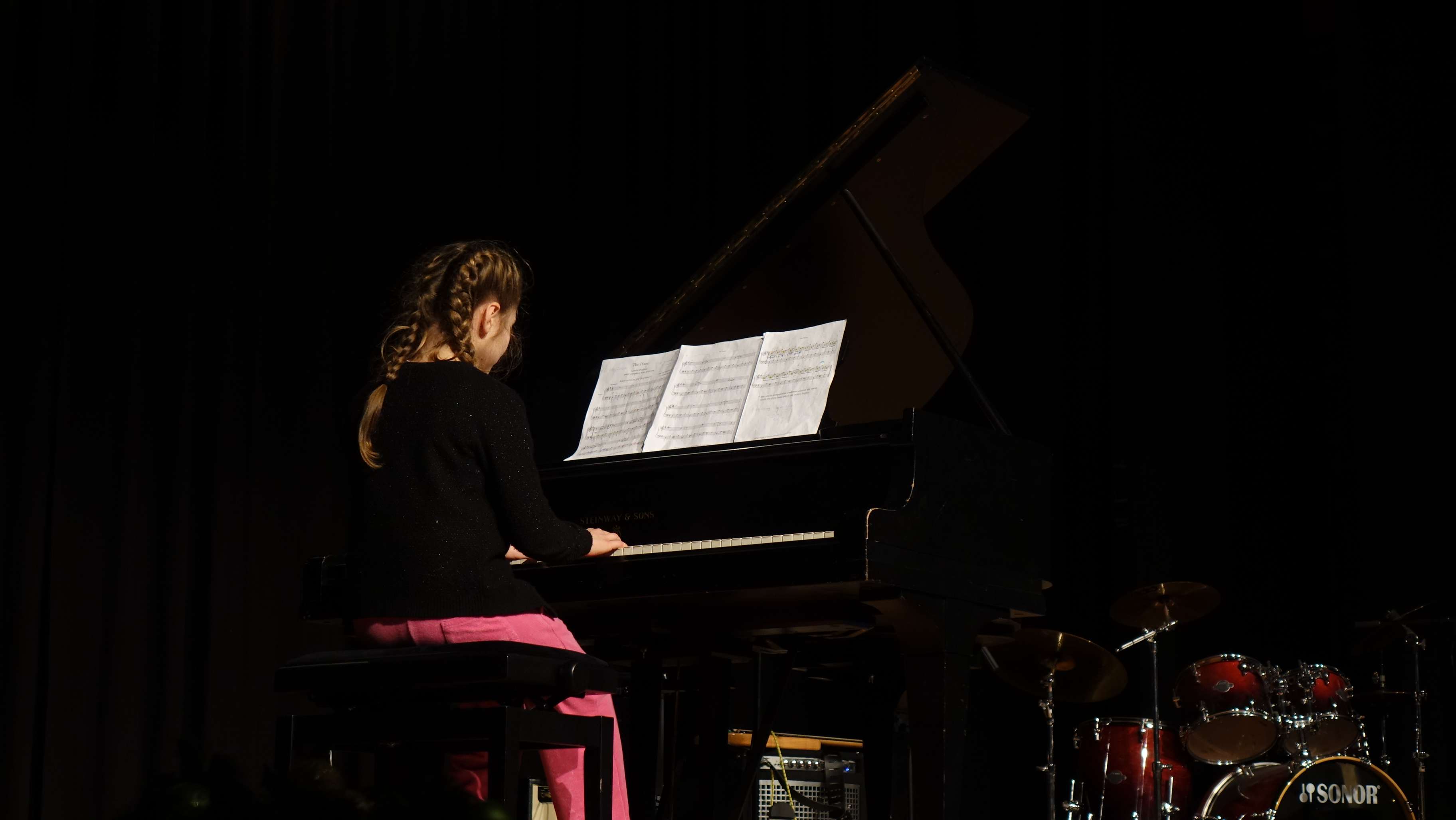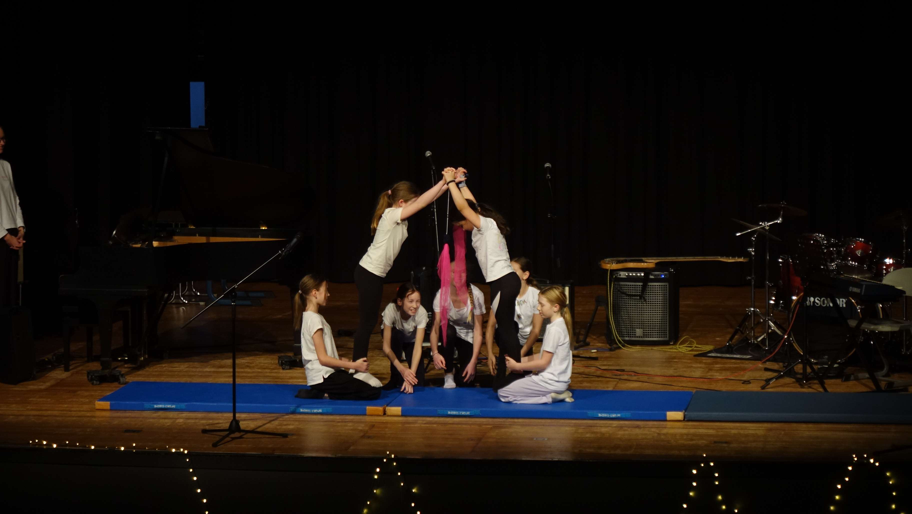 Das Bühnenprogramm war ebenfalls sehr breitgefächert: Solistinnen und Solisten an Klavier und Gitarre hatten ebenso Platz wie die neu formierte Schulband, Klassen aus dem 5. und 6. Jahrgang, die Jazztanz- und die Zirkus-AG.