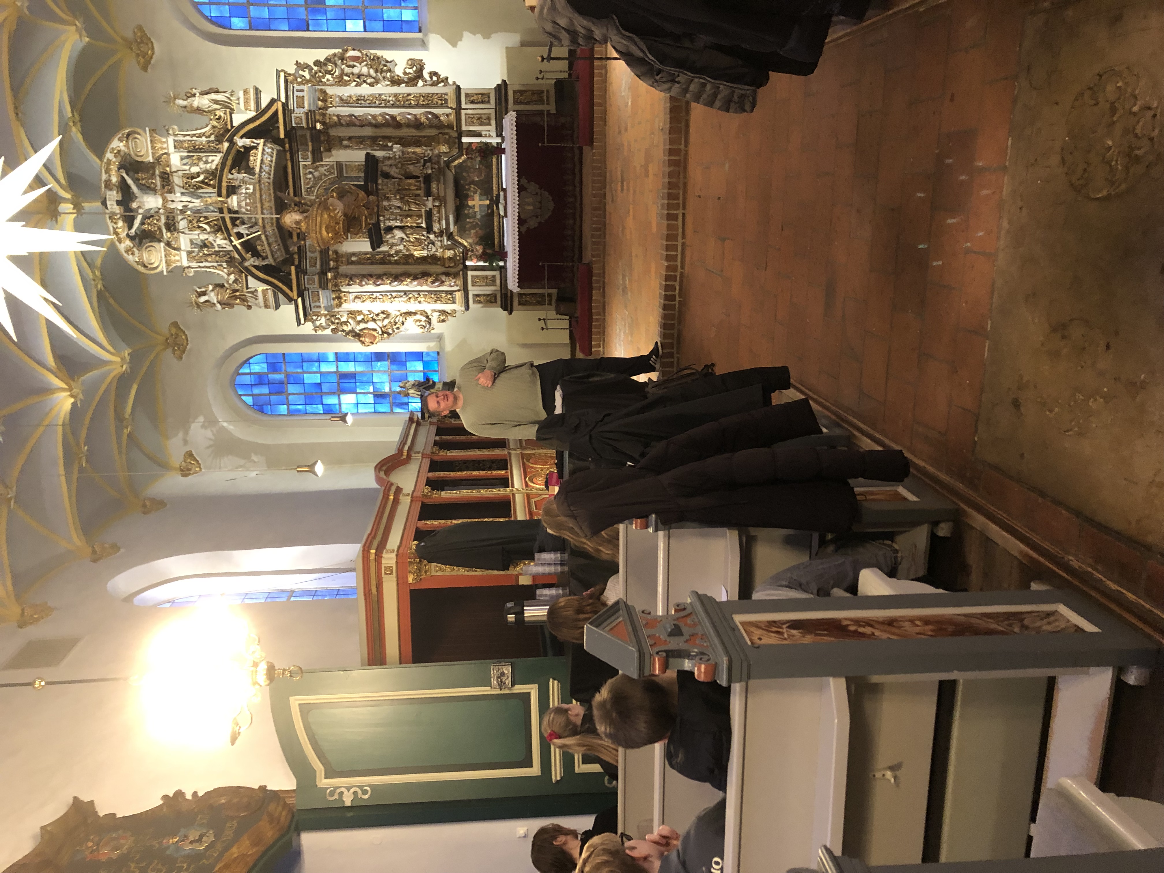 Nach unserer Ankunft wurden wir freundlich empfangen und bekamen zunächst warmen Punsch, um uns aufzuwärmen. Danach hatten wir die Möglichkeit, dem Pastor Fragen zu stellen. Er beantwortete unsere Fragen ausführlich und erzählte uns viel über die Kirche, den Glauben, die Bedeutung der Religion, aber auch private Fragen wie das Einkommen und vieles mehr. Anschließend durften wir uns frei in der gesamten Kirche umsehen, was uns besonders gut gefallen hat. Dabei konnten wir viele Details entdecken. Besonders interessant war ein Raum mit einem alten Sarg, über den wir ebenfalls etwas erfuhren. Der Ausflug war für uns sehr lehrreich und spannend. Wir konnten viel Neues über die Kirche und die Religion lernen. Die winterliche Atmosphäre, der Schnee und der gemeinsame Punsch machten den Tag zu einem besonderen Erlebnis, das uns in Erinnerung bleiben wird.