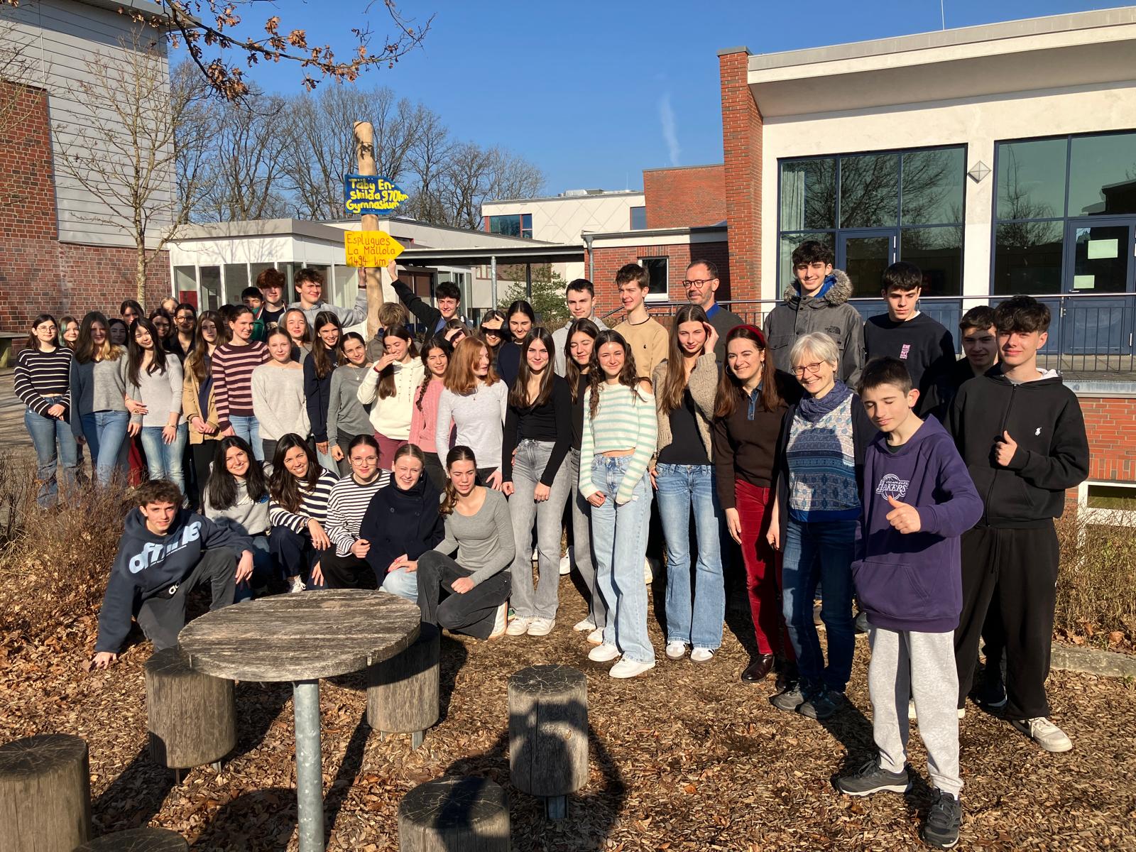 Zurzeit ist die spanische Partnerschule zu Besuch, so dass man die Gunst der Stunde nutzte, um zusammen mit allen Teilnehmenden des Spanienaustausches ein Foto zu machen.