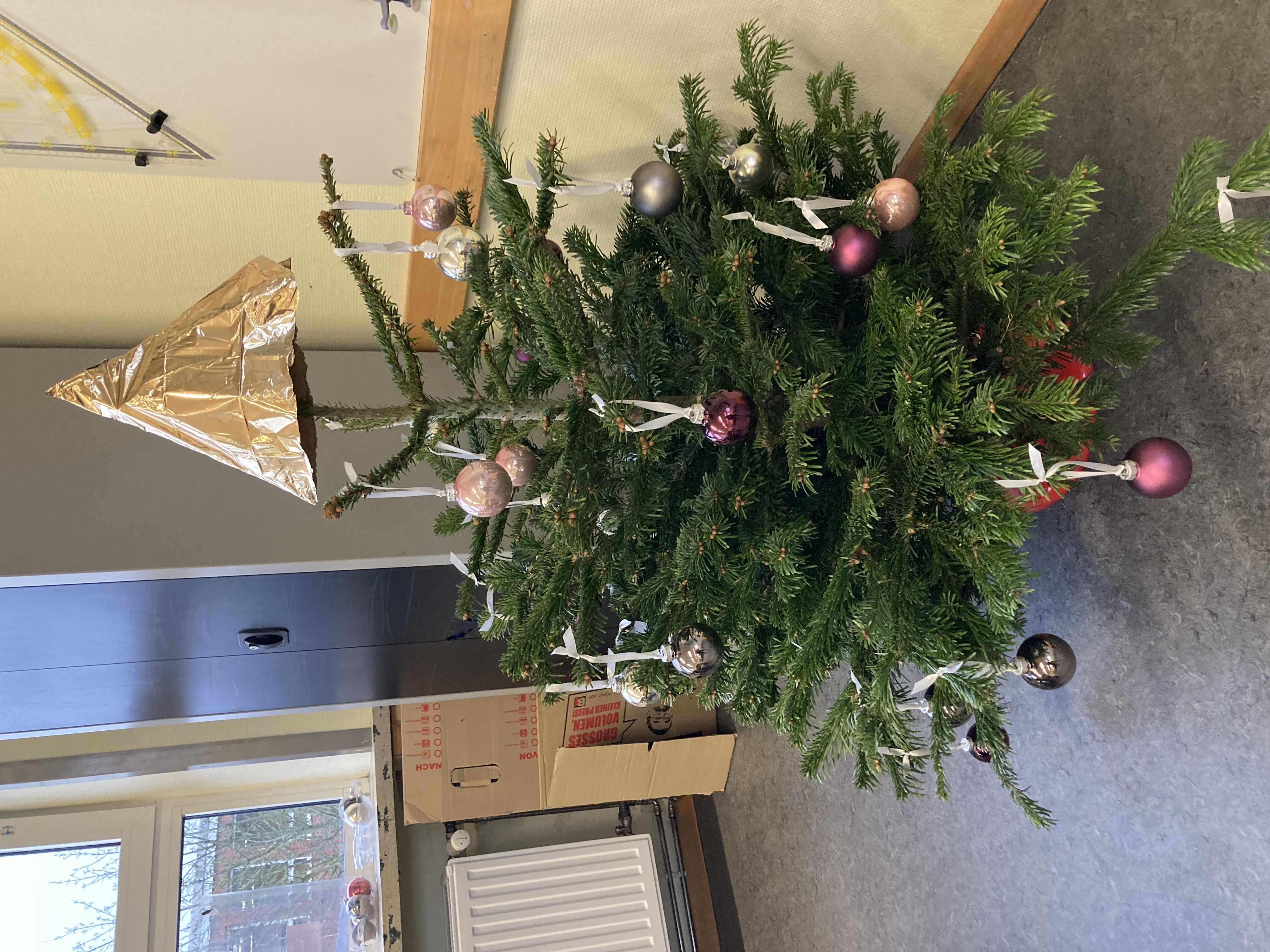 Wie in jedem Jahr haben die Hausmeister eine große Tanne in der Cafeteria platziert und festlich geschmückt. Diese erinnert hoffentlich alle daran, dass trotz vieler Klassenarbeiten nun bald die "schönste Zeit des Jahres" ansteht.